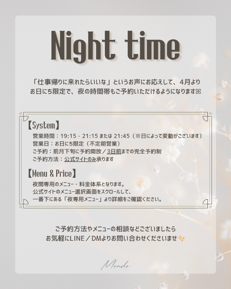 | Address | 岐阜県各務原市鵜沼 ※プライベートサロンとなるため、詳細な住所はご予約確定後にお知らせさせていただきます。 |